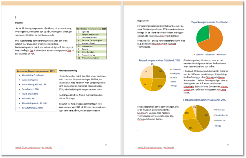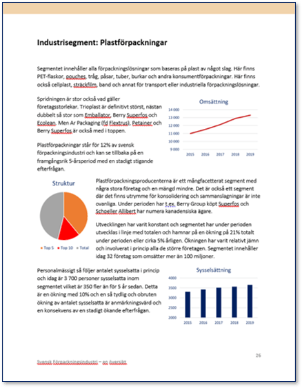 I rapporten ges en bild av hur det ser ut, totalt, som en industrigren men också uppdelat i segmenten.